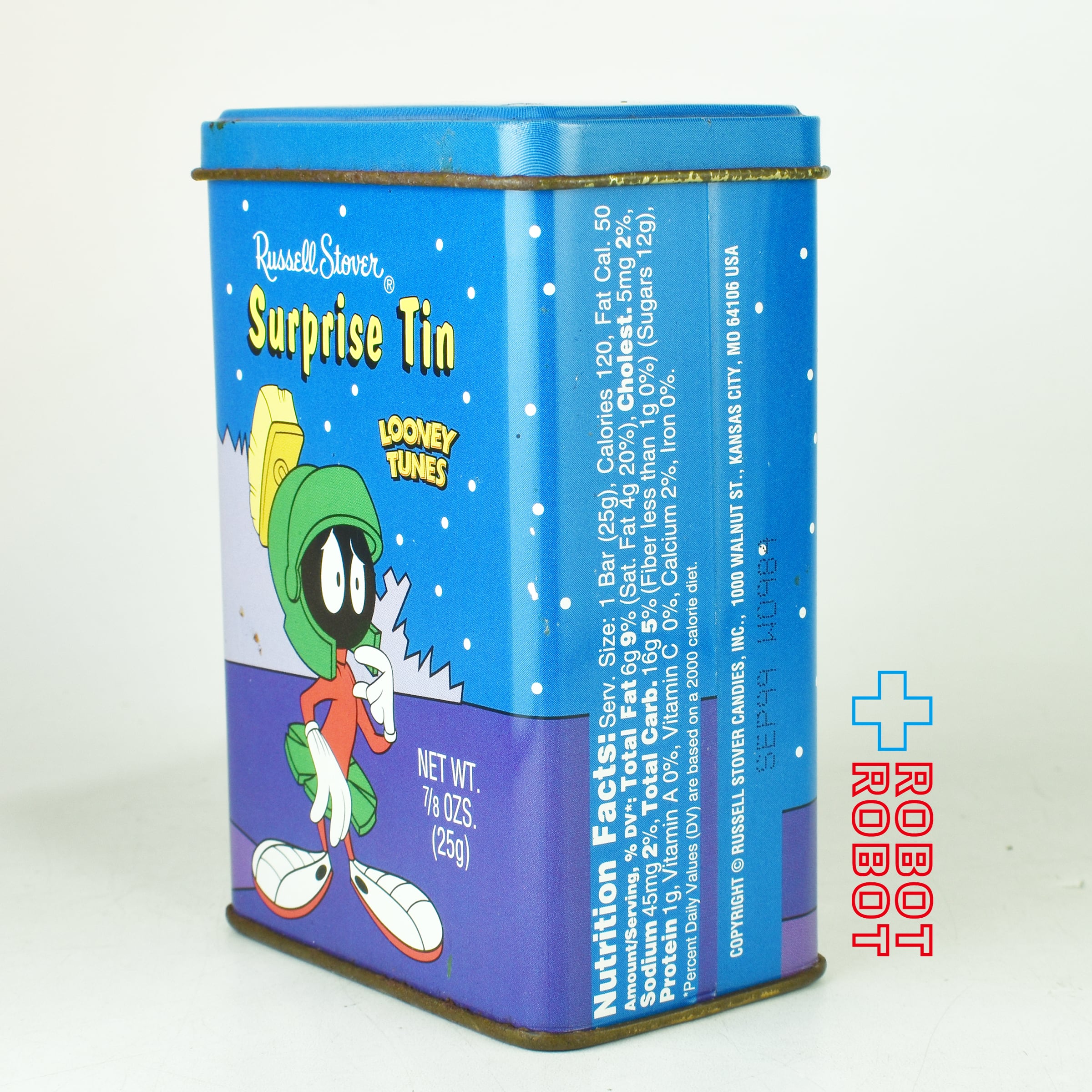 Russel Stover Candies Surprise Tin Looney Tunes tin can MARVIN THE MARTIAN 1998 with sticker