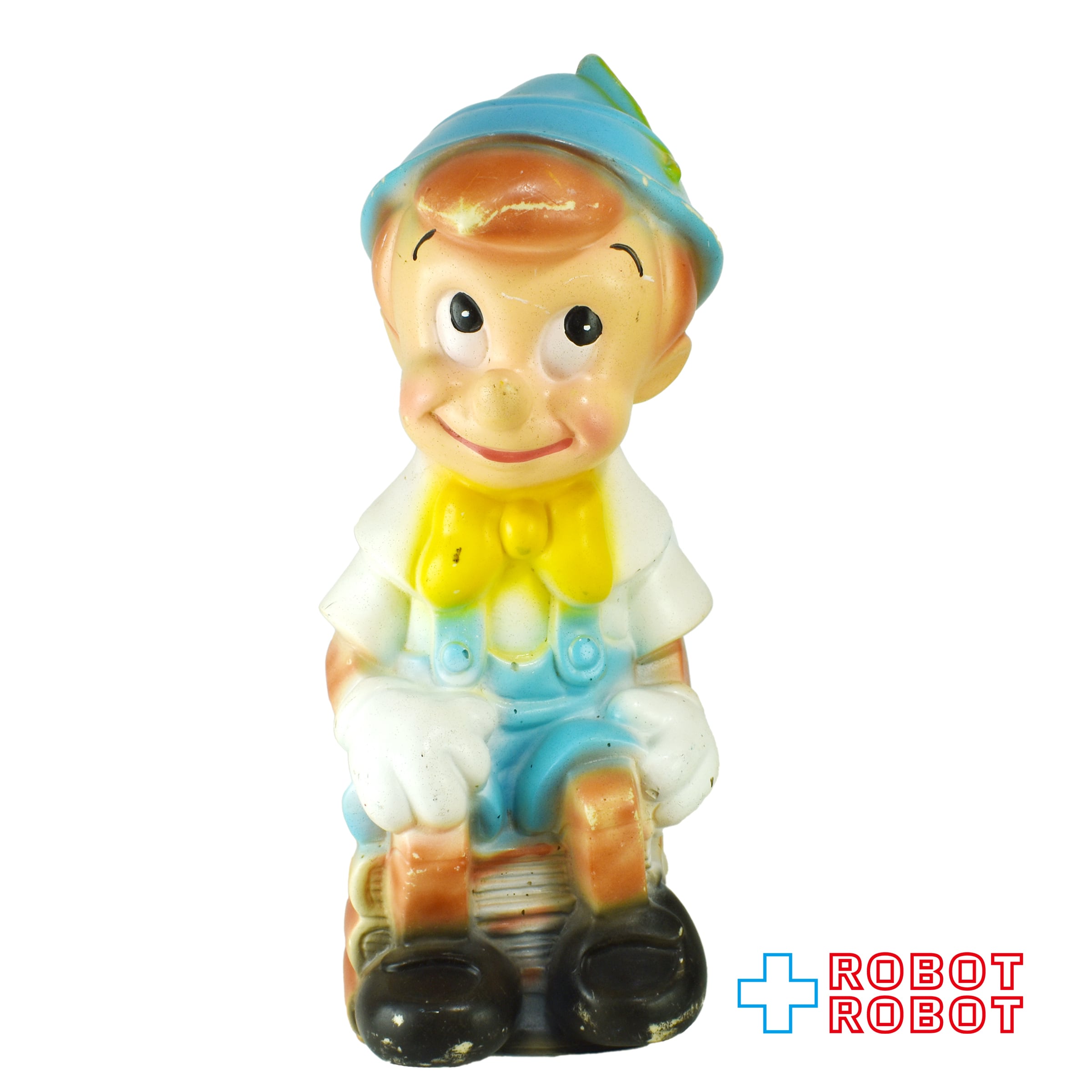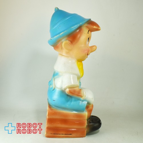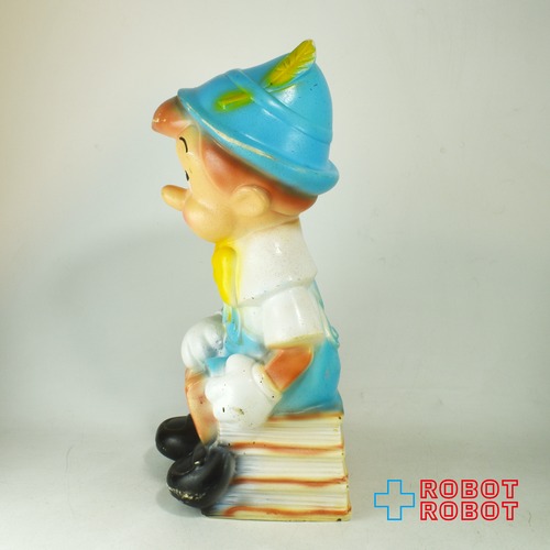 プレイパル社 ディズニー ピノキオ ラージ 珍色? 水色帽子黄色羽 ソフビ貯金箱 バンク フィギュア ※底蓋なし