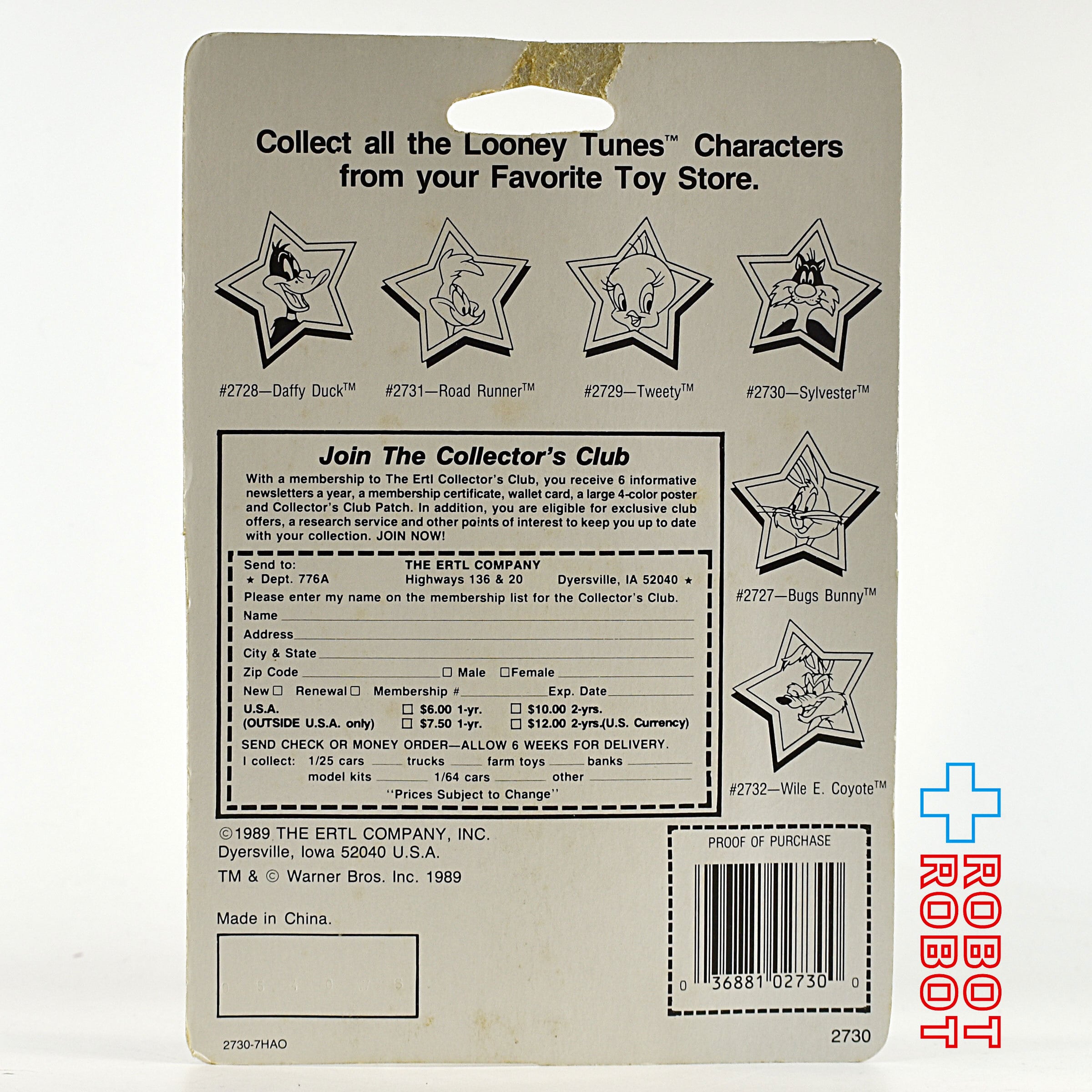 ERTL LOONEY TUNES SYLVESTER die-cast metal figure 1989 opened card