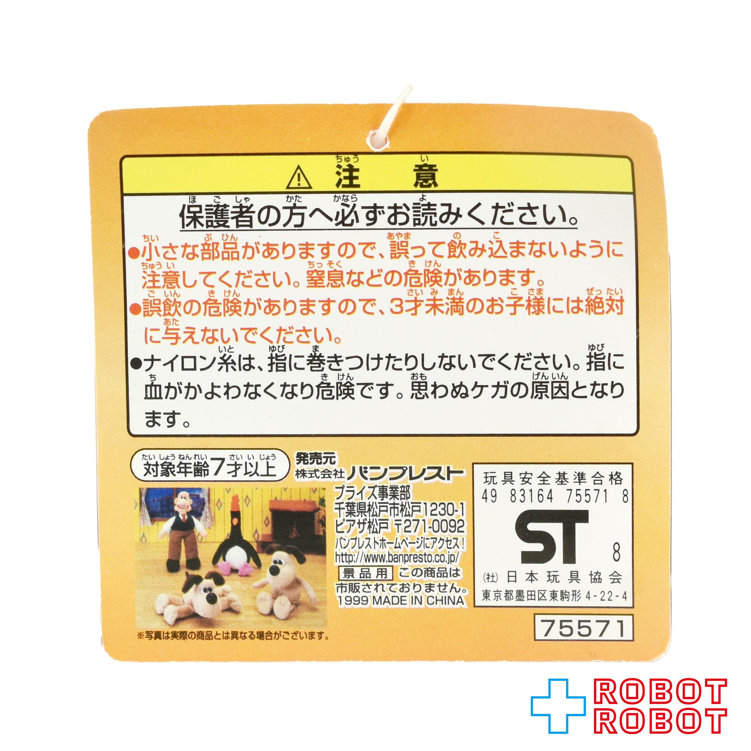 バンプレスト とるとるキャッチャー ウォレスとグルミット グルミット ぬいぐるみ 紙タグ付き 1999