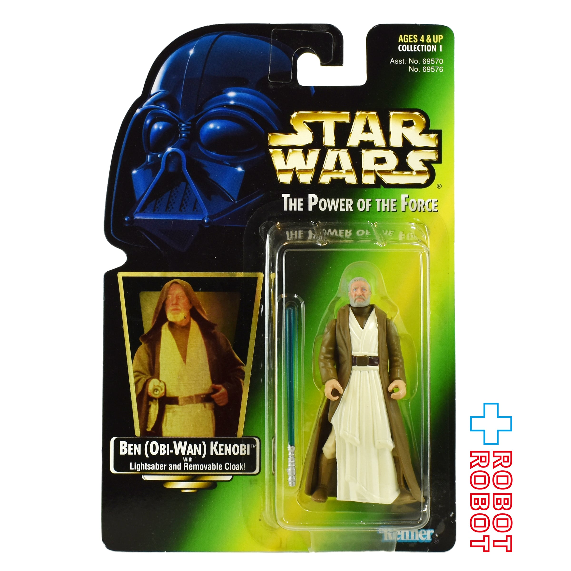Star Wars POTF2 green holo card BEN (OBI-WAN) KENOBI with Lightsaber and Removable Cloak! action figure MOC