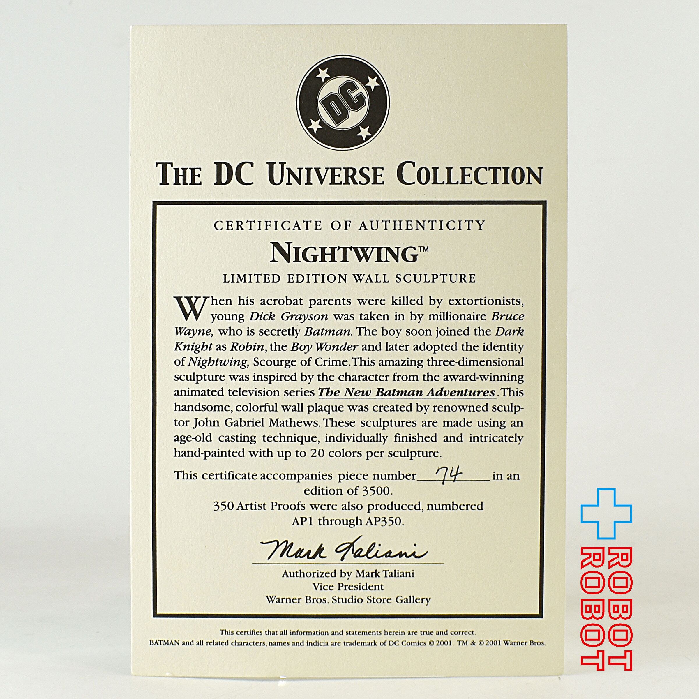 DC Universe Collection Animated BATMAN series NIGHTWING Limited Edition Wall Sculpture