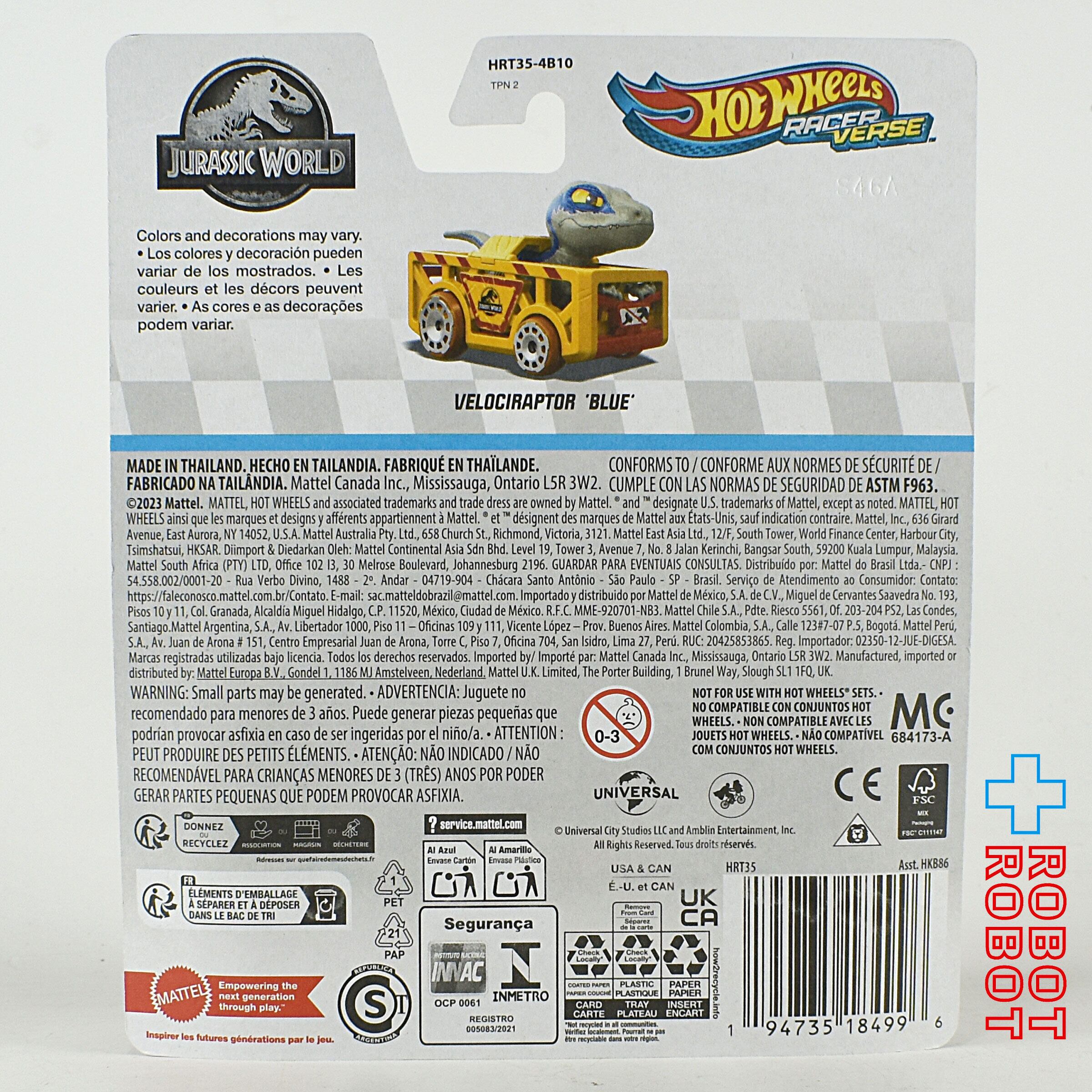 ホットウィール レーサーバース 2024 1/64 ジュラシック・ワールド ヴェロキラプトル ブルー ダイキャスト メタルビークル ミニカー 未開封