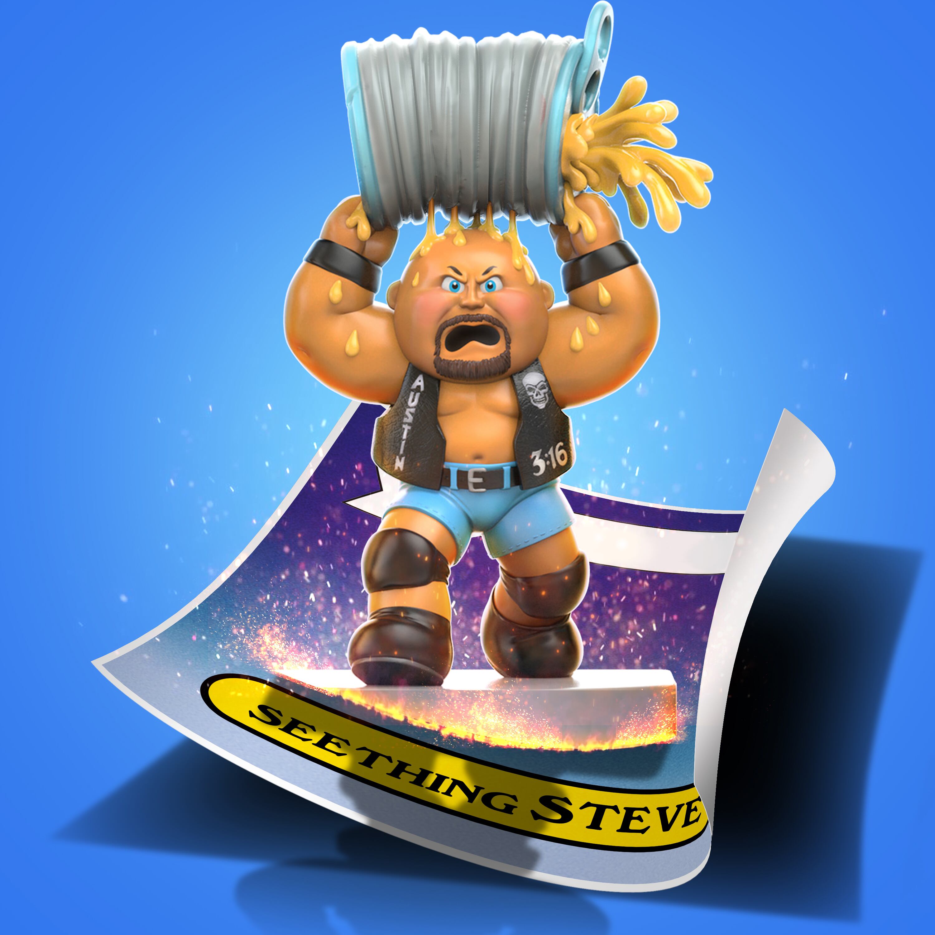 GPK×WWE ガーベッジペイルキッズ シーシング スティーブ ビニールフィギュア (ロイヤルサブジェクト社) 未開封 ※難有り